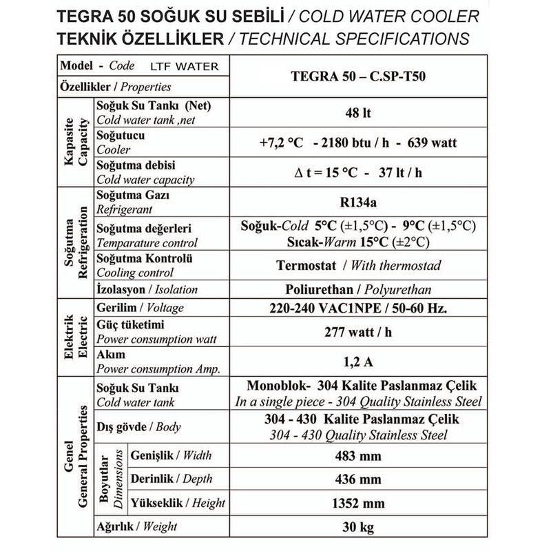 TEGRA 50 Arıtmalı Soğuk Su Sebili / Cold Water Cooler